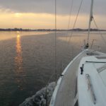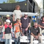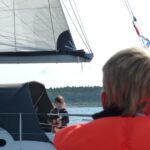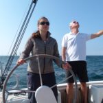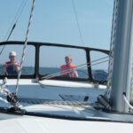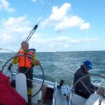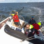 Auf der ersten Leichtwindetappe konnte die Crew gleich einen 6. Platz in der hart umkämpften Gruppe 3 einfahren. Die top ausgerüstete, dafür aber knapp 8 Tonnen schwere Yacht lief also besser als erwartet – sogar platt vorm Laken. Die Überraschung, dass auch Ofen, Warmwasseranlage, Badeplattform, 200l Diesel und volle Wassertanks kein Hinderniss für erfolgreiche Leichtwindwettfahrten sind, wurde dann in der nächsten Wettfahrt westlich vor Hiddensee bestätigt. Bei keinem bis gar keinem Wind hatte sich die „Senfkuh“ kontinuierlich unter Land nach vorne geschaukelt und konnte sogar einen 3.Platz feiern. Und das nach den Gerüchten, dass das Schiff nur bei viel Wind fährt. Vor versammelter Gesellschaft auf Hiddensee nahm Optisegler Timo Neudert aber die kleine Trophäe als deutlichen Gegenbeweis entgegen.