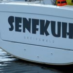 Auf der Etappe nach Sassnitz hat die Mannschaft dann wohl zu laute Reggae Musik über die fette Anlage gehört … oder hat der riesige Plotter und die Navi-Anzeigen zu viele Funktionen und schöne bunte Bildchen angezeigt … oder war einfach nur die tolle Natur an Steuerbord schuld? Auf jeden Fall war da „nur“ ein 8. Platz drin. Aber das war natürlich sowieso nur die mentale Vorbereitung für die letzte Etappe zurück nach Greifswald. Bei 15-22 Knoten aus Südwest stand nämlich am letzten Tag eine lange Kreuz über den Greifswalder Bodden an. Und die sollte zum Offenbarungseid werden. Denn man konnte nur staunen, wie die “Senfkuh“ durch die bekannte kurze/steile Boddenwelle auf einmal los stampfte und alles rechts und links liegen ließ. Von den gleich großen Yachten mal gar nicht zu sprechen, lieferte sich die gut 11m lange Yacht einen Kampf mit den ganz großen, winkte großzügig 47Fußer vorne durch und wurde letztlich Zweiter hinter der wieder mal unschlagbaren Relax de Luxe. Auf einmal sorgte nicht mehr nur das “Smart Mooring System” für Gesprächsstoff, sondern auch die Upwind-Performance ab 18 Knoten Wind!Bei der abschließenden Siegerehrung wurde die außergewöhnliche Crew der Jugendabteilung als Gesamtvierter der Gruppe 3 gefeiert. Und als krönenden Abschluss überreichte der Oberbürgermeister sogar noch den Wanderpokal für die beste Charteryacht des diesjährigen Hanse Cups. Fährt ja also doch ganz gut diese Hanse 385!