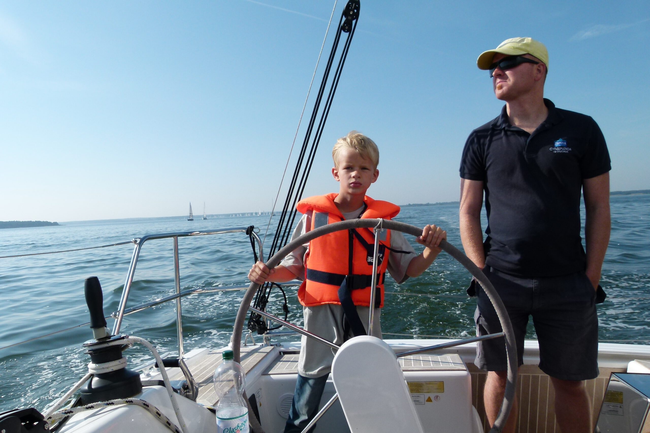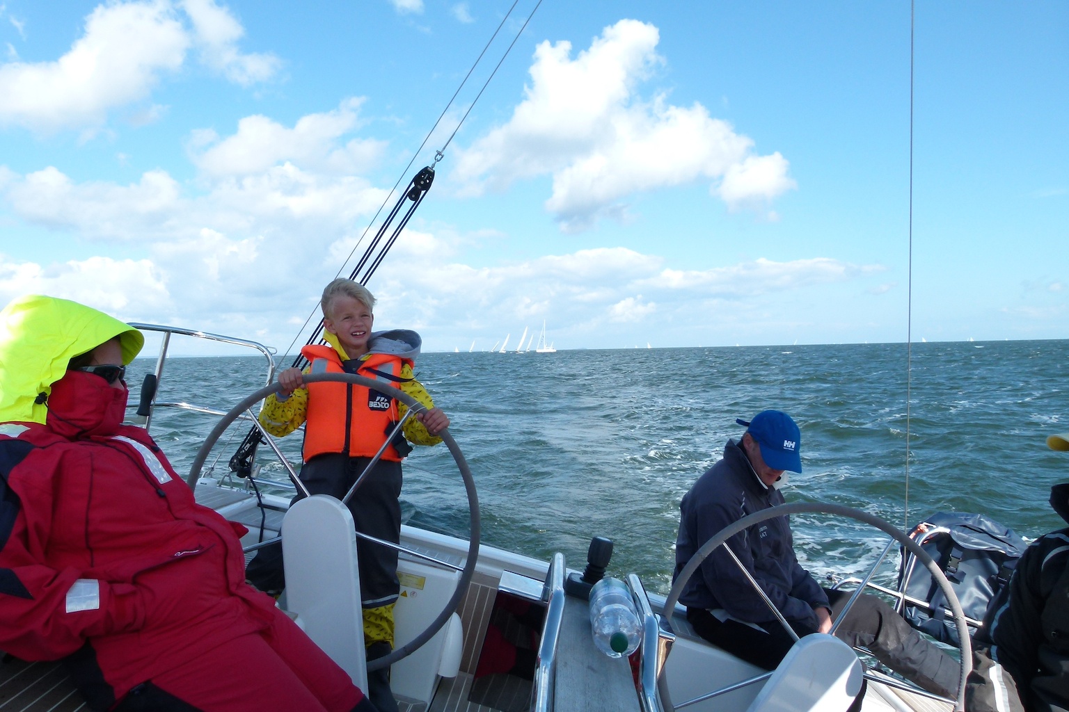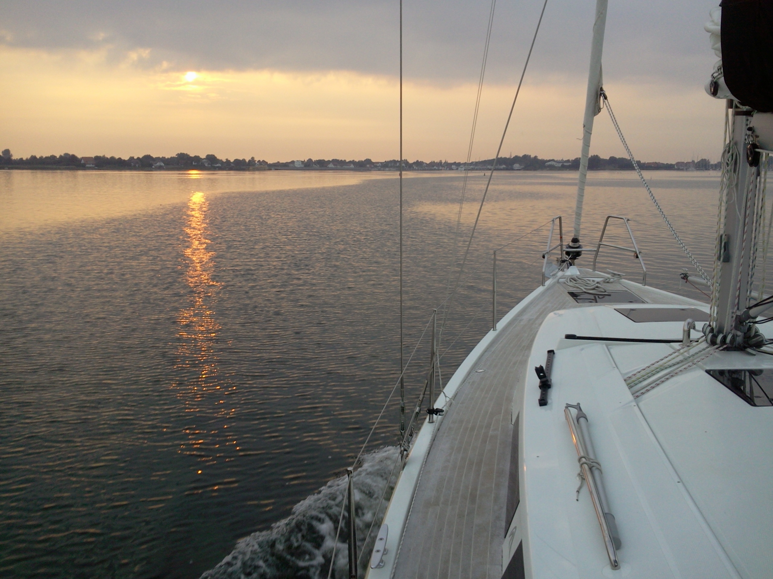 Auf der ersten Leichtwindetappe konnte die Crew gleich einen 6. Platz in der hart umkämpften Gruppe 3 einfahren. Die top ausgerüstete, dafür aber knapp 8 Tonnen schwere Yacht lief also besser als erwartet – sogar platt vorm Laken. Die Überraschung, dass auch Ofen, Warmwasseranlage, Badeplattform, 200l Diesel und volle Wassertanks kein Hinderniss für erfolgreiche Leichtwindwettfahrten sind, wurde dann in der nächsten Wettfahrt westlich vor Hiddensee bestätigt. Bei keinem bis gar keinem Wind hatte sich die „Senfkuh“ kontinuierlich unter Land nach vorne geschaukelt und konnte sogar einen 3.Platz feiern. Und das nach den Gerüchten, dass das Schiff nur bei viel Wind fährt. Vor versammelter Gesellschaft auf Hiddensee nahm Optisegler Timo Neudert aber die kleine Trophäe als deutlichen Gegenbeweis entgegen.