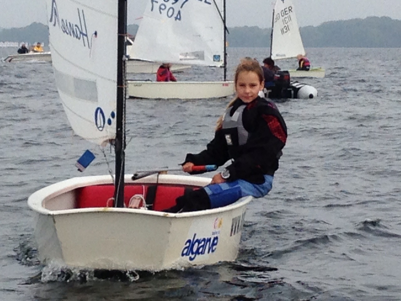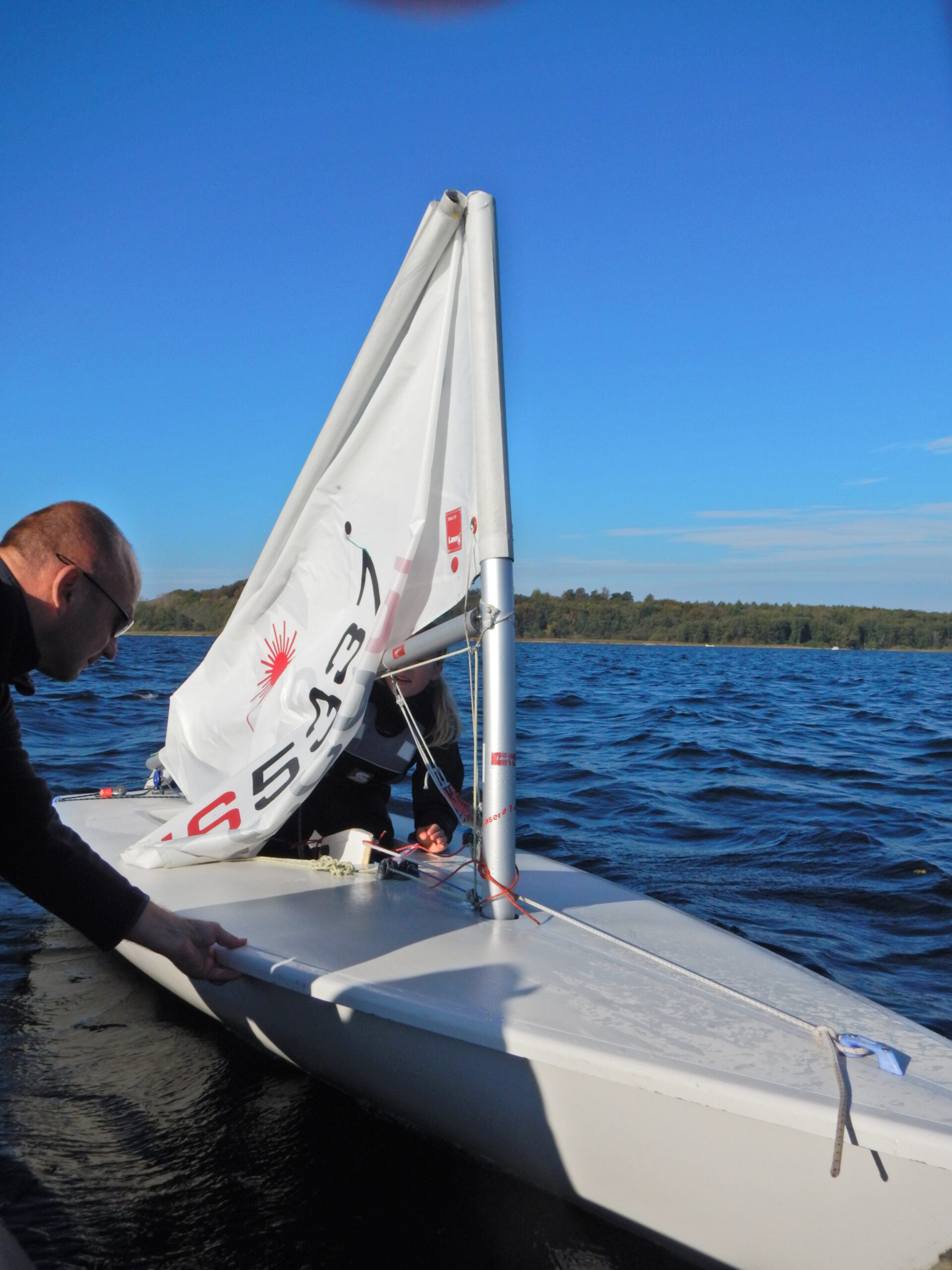 Auf der anderen Regattabahn kämpfen die Laser 4.7 und Radial um die Plätze. Theresa Wierschin hatte leider mit einem Mastbruch und einem Bruchs des Ruderbeschlags kein Glück an diesem Wochenende. Trotzdem gab sie als eine der jüngsten Teilnehmerinnen im Feld nicht auf. Für die Herbstferien wurde sie zudem zu einem Sichtungstrainingslager der Landestrainer nach Warnemünde eingeladen.