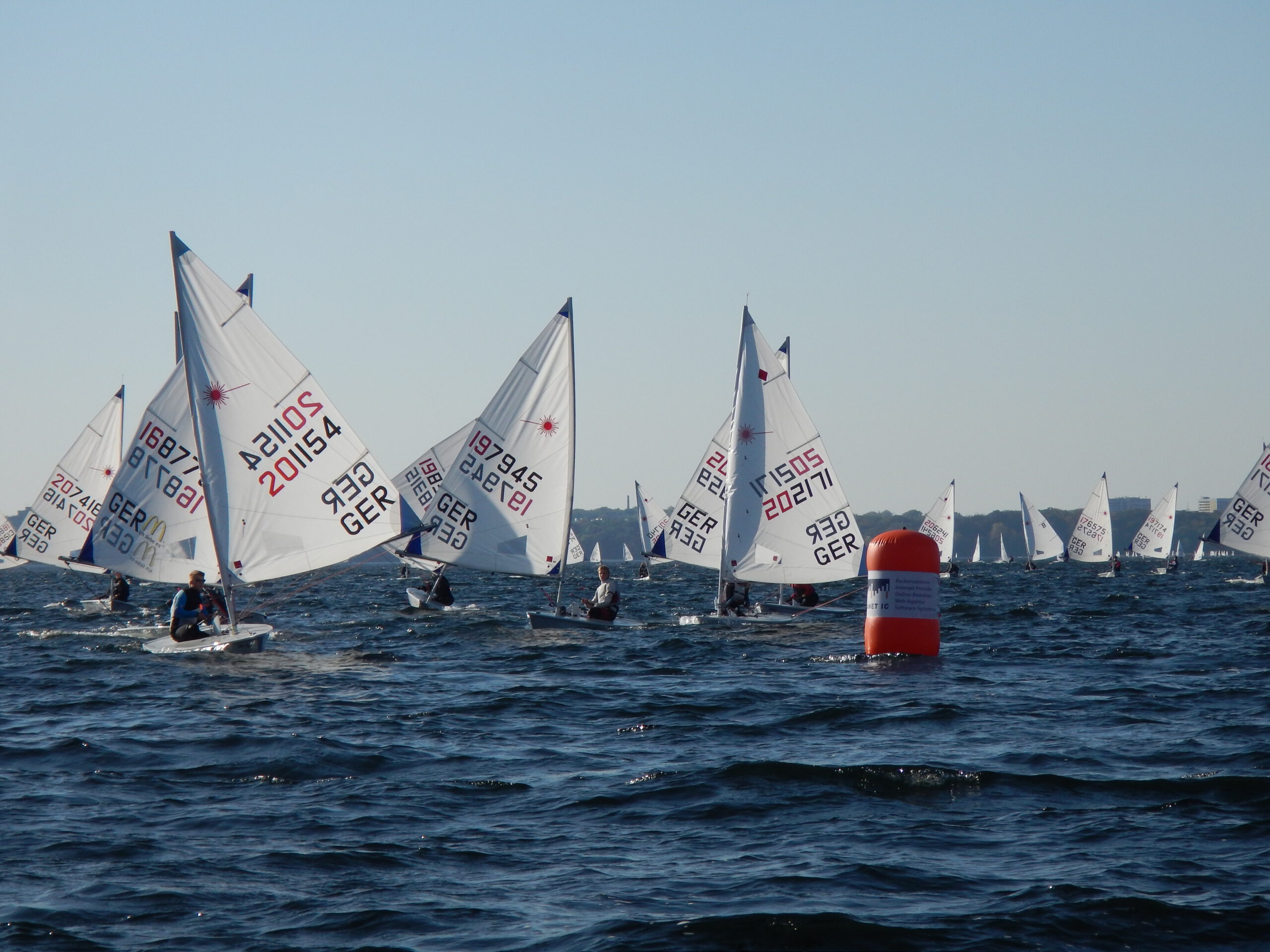 Bei den Laser Radials konnten Lukas Middendorf und Mattes Köppe mit ein paar schönen Starts imponieren – bei 66 Booten an der Startlinie nicht immer ein einfaches Unterfangen. Ziel für die nächste Saison muss es dann sein, die guten Positionen nach dem Start zu halten. Mattes konnte sich das ganze Wochenende gut in der ersten Hälfte des Feldes behaupten. Ein Frühstart und eine Aufgabe wegen Materialprobleme verhinderten aber eine bessere Platzierung. Philipp Gläser hat sich dazu einen guten Kampf an der Spitze des Feldes geliefert. Ein verkorkster Start und ein unnötiger Frühstart waren dann aber doch zu viel um aufs Podium zu gelangen und so sprang am Ende der 7. Platz heraus.