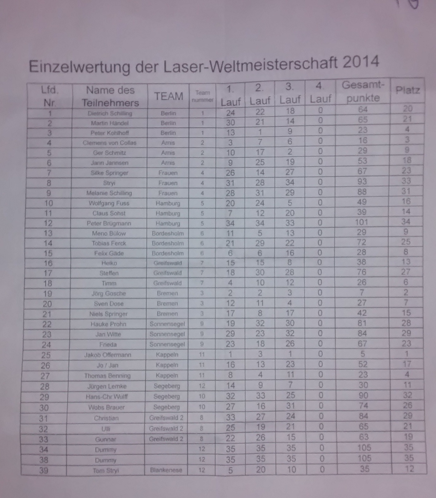 Noch bevor die Opti-Oldie-Saison losgeht, sind unsere Laser Master noch einmal zu einer „richtigen“ Regatta gefahren. Was für große Jungs sozusagen. Also sind zur schon traditionellen inoffiziellen Laser Team-Weltmeisterschaft in Arnis an der Schlei letztes Wochenende wieder zwei Greifswalder Teams angereist.