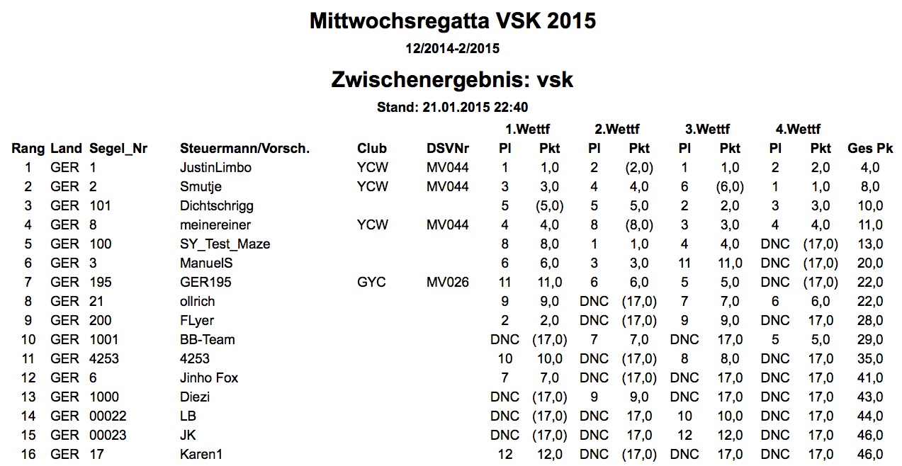Den vorletzten Spieltag der VSK-Mittwochsregatta-Liga hat die Crème de la Crème der Sofa-Segler unter sich ausgetragen. Hoffentlich geht es den Abwesenden gut. Im besten Fall lagen sie einfach mit Angstschweiß im Bett! Auf jeden Falls haben sie viele Punkte liegen gelassen! Als Aufmunterung wurde dafür ein Streicher in die Serie eingeführt.