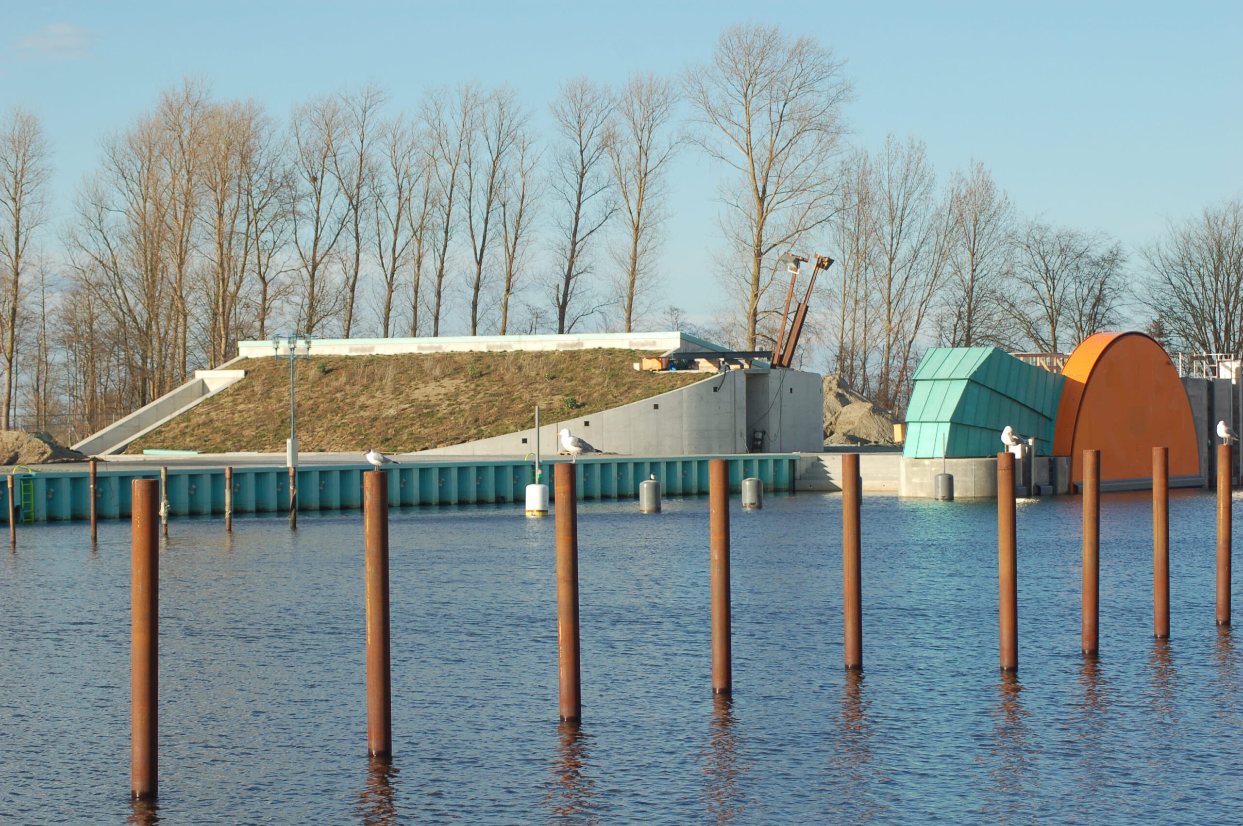 Stand der Bauarbeiten bei Sperrwerk und Deichanlagen