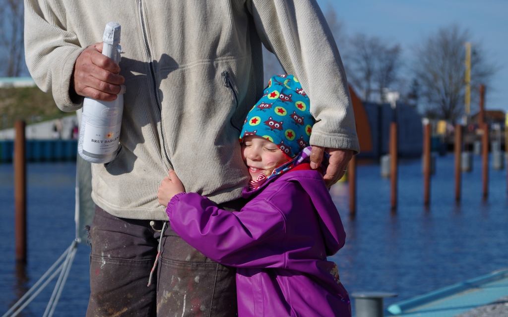 Greifswald ist um ein schnelles Schiffchen reicher. Am Samstag wurde nämlich die neue Melges24 von Familie Köppe getauft. In geselliger Runde gab Jette als denkbar beste Patin der schnittigen Rennziege ihren Segen und taufte sie auf den Namen „Slippery when wet„.