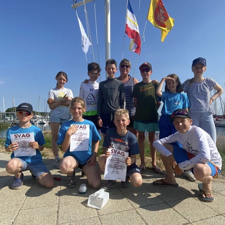 Flora Hübner als Vierte und Alex Fricke als Siebter konnten auch in Opti B tolle Erfolge einfahren. Eine tolle Greifswalder Team-Leistung und ein super Segelwochenende bei der Sommersonnenwendenregatta in Rerik.