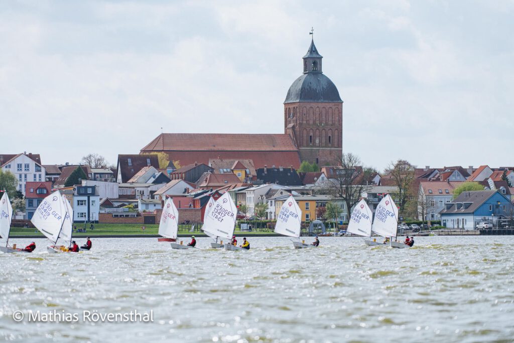 Die erste Opti-Regatta in M-V ist traditionell der Bernsteinpokal in Ribnitz. Am vergangenen Wochenende wurde am Samstag fleißig gesegelt, bevor am Sonntag wegen bei den stürmischen Böen keine Wettfahrten stattfanden.